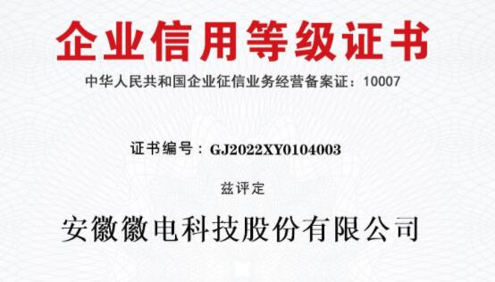 徽電科技榮獲“AAA級(jí)企業(yè)信用等級(jí)”認(rèn)證